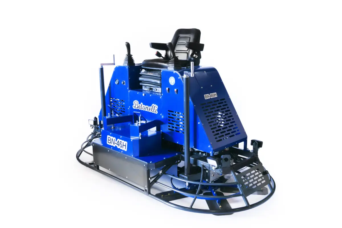 The Betonelli BN46H is an 8-foot, twin-rotor ride-on trowel built for serious production and heavy commercial flatwork. This machine is designed for contractors who need maximum coverage, strong torque, and reliable finishing power on large pours. With its robust frame, powerful engine, and smooth hydraulic control, the BN46H is built to handle long days on big slabs without flinching.