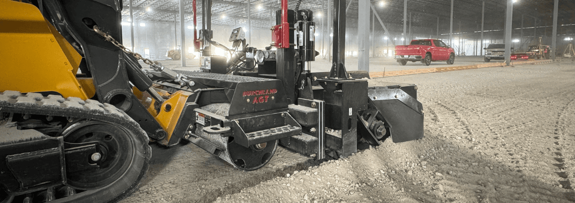 The Burchland Auto Grading Trimmer (AGT) is a skid steer attachment engineered for precision grading on paving projects that require working with hard materials. This versatile attachment excels in trimming sub-grade soil beneath building pads, parking lots, curbs, gutters, sidewalks, trails, and roads.